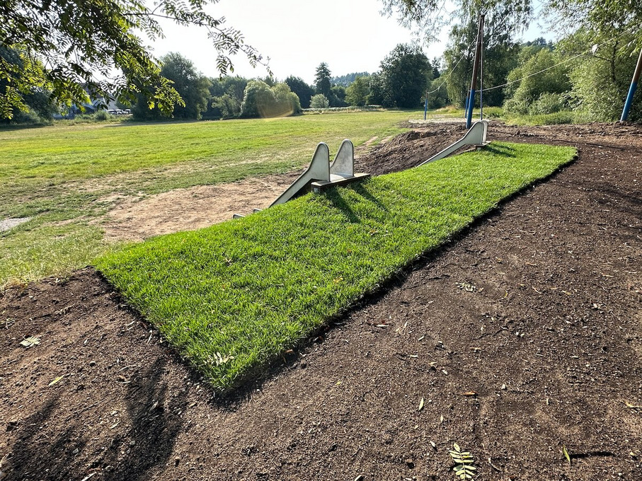 Wir sind vor allem den Eltern, die sich intensivst in die Planung eingebracht haben, sehr dankbar. Warum die Realisierung so lange gedauert hat, woran es letztendlich lag, wissen wir nicht. Aber dass jetzt ein teurer Rollrasen ausgelegt und dann auch noch aufwändig bewässert wird, das halten wir für den Schildbürgerstreich des Monats.